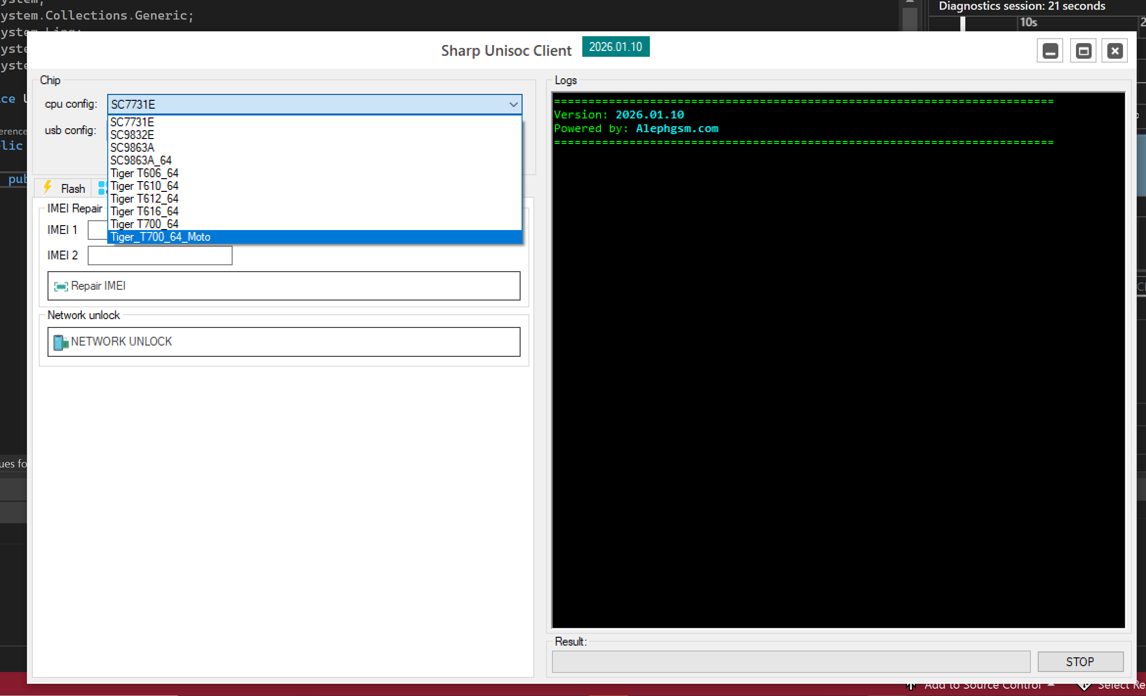 Sharp Unisoc Client is developed for Spreadtrum / Unisoc devices using C++/Qt and C# by alephgsm.com.